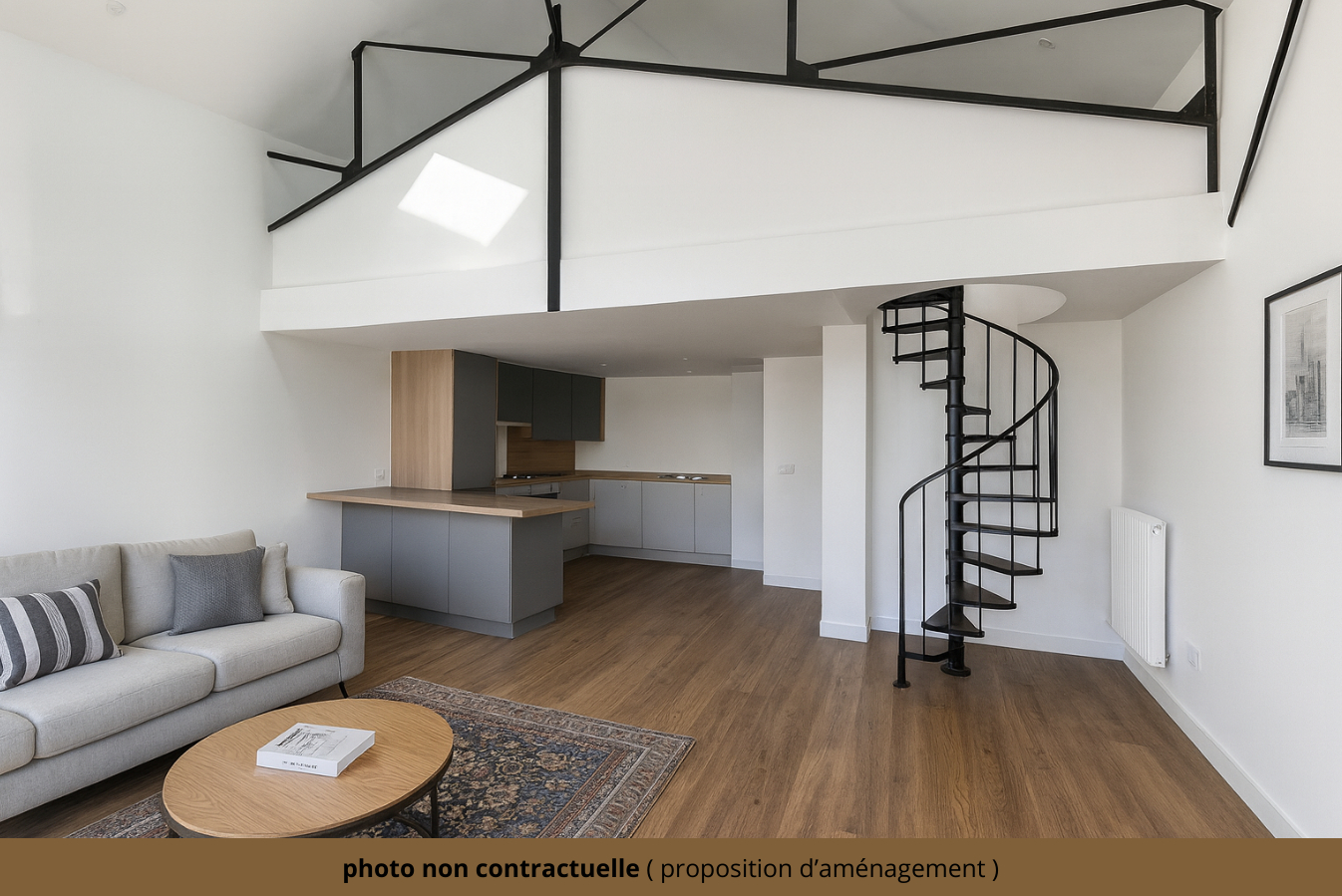 La Pléiade – Immobilier de Caractère vous propose à la vente ce loft de 50 m², situé dans une rue calme et recherchée du quartier Boussinière.
