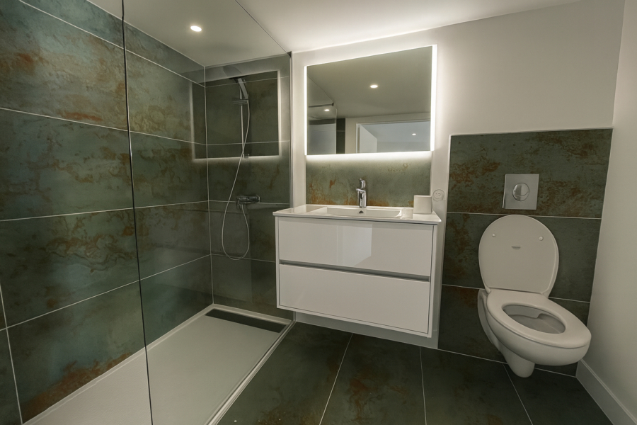 À l’étage, un élégant escalier en colimaçon mène à l’espace nuit, composé d’une chambre intime et préservée. Une vaste salle d’eau, moderne et pratique, complète l’ensemble.
