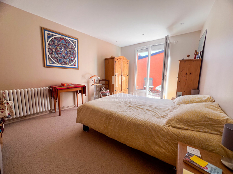Le rez-de-chaussée accueille également deux chambres, dont une avec salle d’eau privative et accès extérieur, ainsi qu’un second espace pouvant faire office de chambre, de bureau ou de salon indépendant, offrant une flexibilité précieuse pour une vie de famille ou une activité professionnelle à domicile.